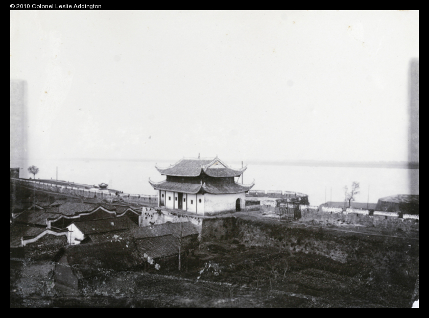Caption on support : The Chinese City Kiukiang is surrounded by a large mud wall. A walk round this was a favourite one on Sunday afternoons.