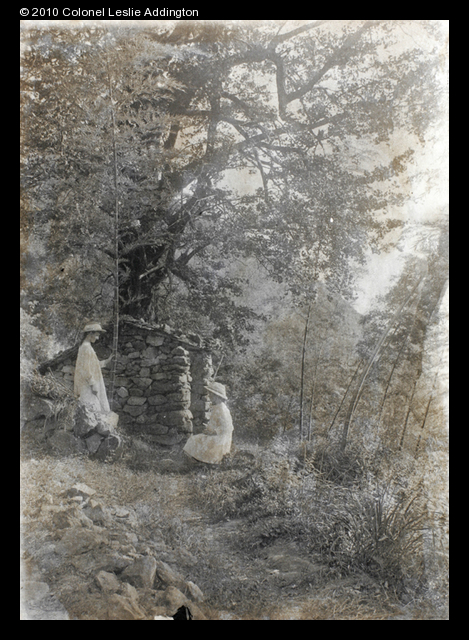 Caption on support : Gladys & Eileen at small shrine on road up to temple. 1899.