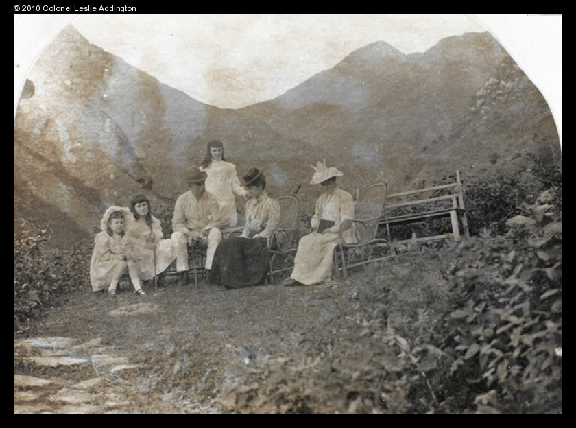 Caption on support : Gladys, Eileen, Yvonne, Father, Mother & Maddie at ‘the Point’, the end of the daily afternoon walk.