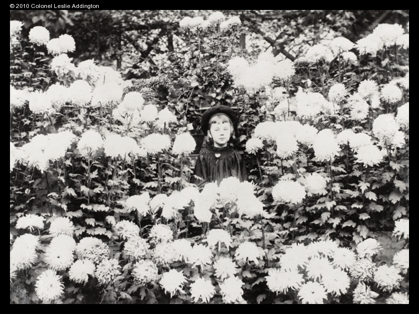 Caption on support : Yvonne among the chrysanthemums. 1900