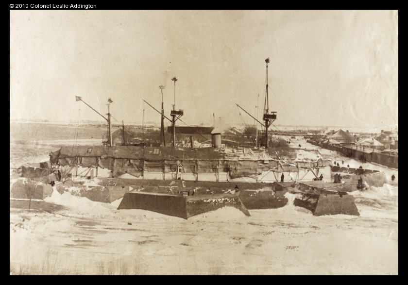 Caption on support : H.M.S. ‘Firebrand’ and U.S.S. ‘Petrel’ in dock for the winter. Newchwang. 1894-95.
