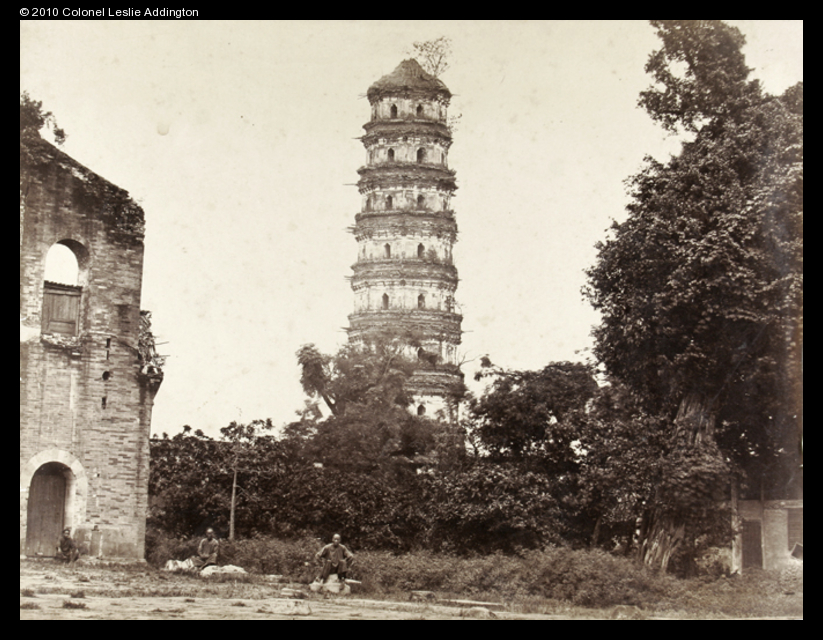 A reproduction of this image is on page 36 in 'China in Old Photographs' by Burton F. Beers (Charles Scribner, 1978): "Flowery Pagoda".