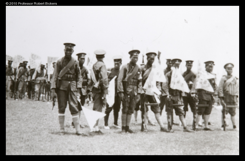 The Shakee Shaji images document events on 23 June 1925, in the aftermath of the May 30th shootings in Shanghai, when shooting broke out between demonstrating Chinese military cadets, and British and French servicemen and volunteers across the canal on Shameen/Shamian island, Canton (Guangzhou). It's not clear who opened fire first, but quite clear who had more firepower. These are likely to be Whampoa (Huangpu) Military Academy Cadets.