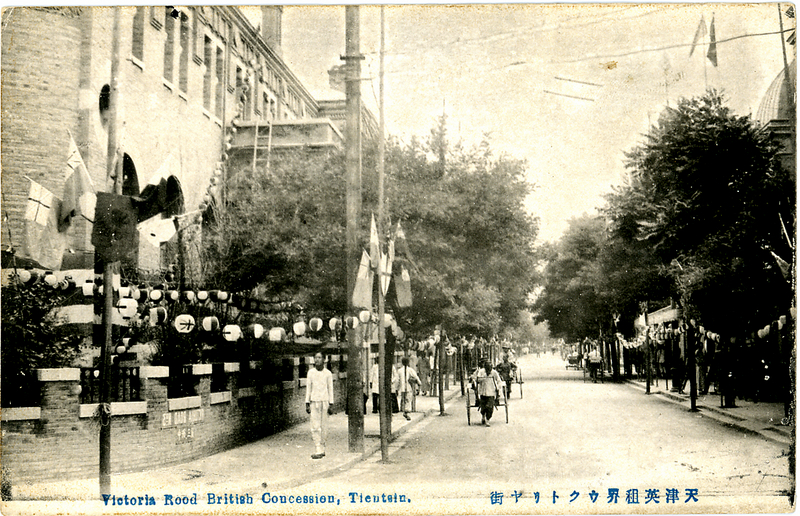 Flags and lanterns in Victoria Road, Tientsin
