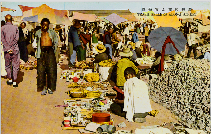 Keywords : Grove;clothes;costume;umbrella;stall;trade;bargain;buying;selling;hat;basket