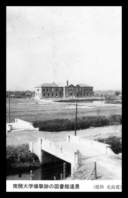 Translation of the Japanese caption on the photograph: Bombsite, the building is Nankai University library.