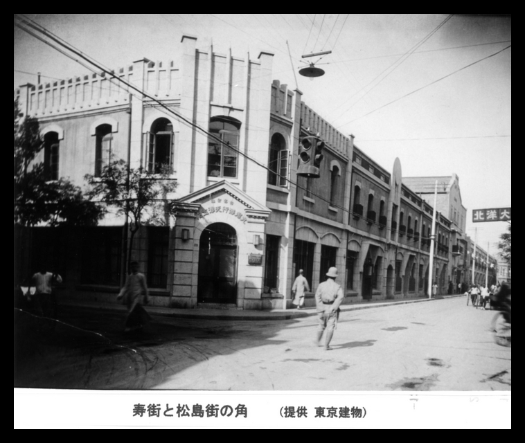 Translation of the Japanese caption on the photograph: Corner of Kotobuki Street and Matsushima Street.