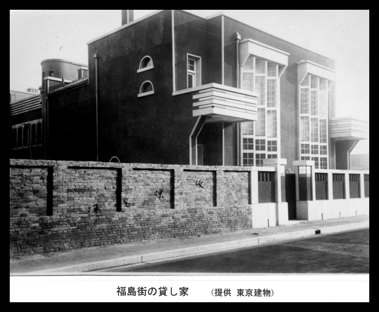 Translation of the Japanese caption on the photograph: A house to let, Fukushima Street.