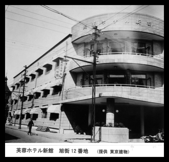 Translation of the Japanese caption on the photograph: Fuyo Hotel, Annex, 12 Asahi Street.