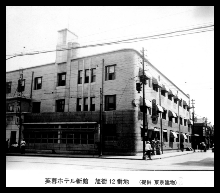 Translation of the Japanese caption on the photograph: Fuyo Hotel, Annex, 12 Asahi Street.