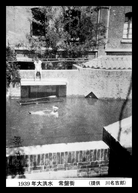 Translation of the Japanese caption on the photograph: 1939 floods. Tokiwa Street.