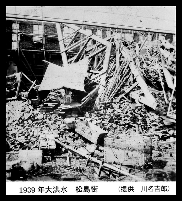 Translation of the Japanese caption on the photograph: 1939 floods. Matsushima Street.