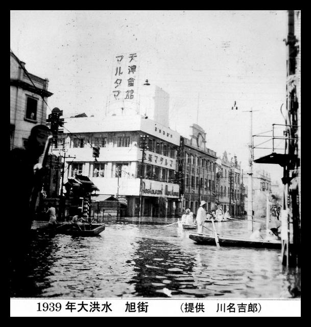 Translation of the Japanese caption on the photograph: 1939 floods. Asahi Street.