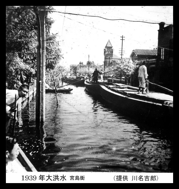 Translation of the Japanese caption on the photograph: 1939 floods. Miyajima Street.