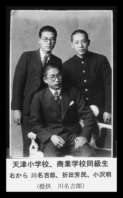 Classmates from Tianjin primary school and commercial school. From the right: Yoshiro Kawana, Yoshitami Orime, Akira Ozawa.