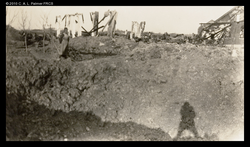 Caption on print : Where an air bomb hit the workshops