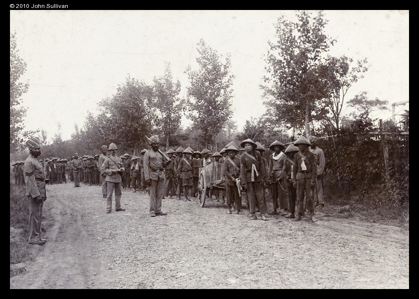 Keywords : Sullivan;Shanghai;Municipal;Police;SMP;punishment;crime;chain;gang;labour;labor;guard;uniform;helmet;rifle;cart;road