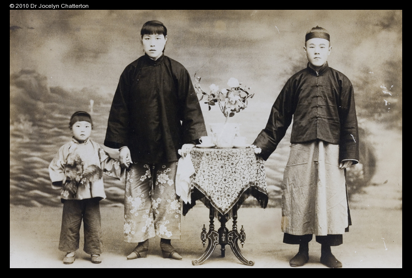 Child, woman (with bound feet) and man