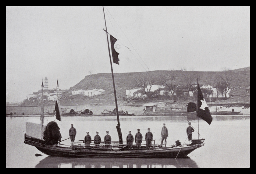 Caption on support : A RIVER GUN BOAT.