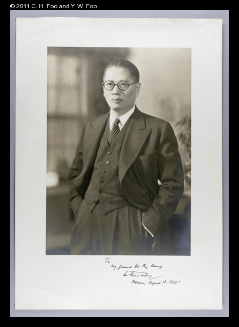 Captioned on the mount: 'To my friend Foo Ping Sheung. Tse-ven Soong, Moscow, August 13th 1945'.