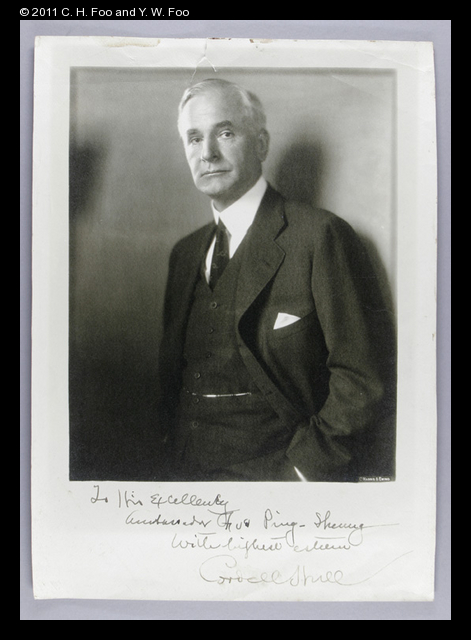 Autographed portrait: ‘To His Excellency Ambassador Fu Ping-Sheung, With highest esteem, Cordell Hull’.