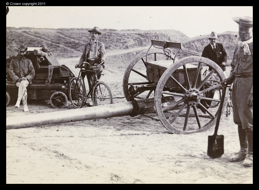 4" naval gun, bicycle and soldiers, Tientsin