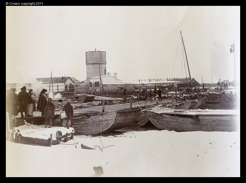 Keywords : TNA;National;Archives;Boxer;boat;sampan;snow;ice;winter;river;French;tricoleur;flag