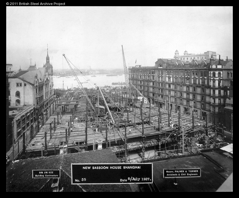 Sassoon House (The Cathay Hotel) under construction, Shanghai, July 1927