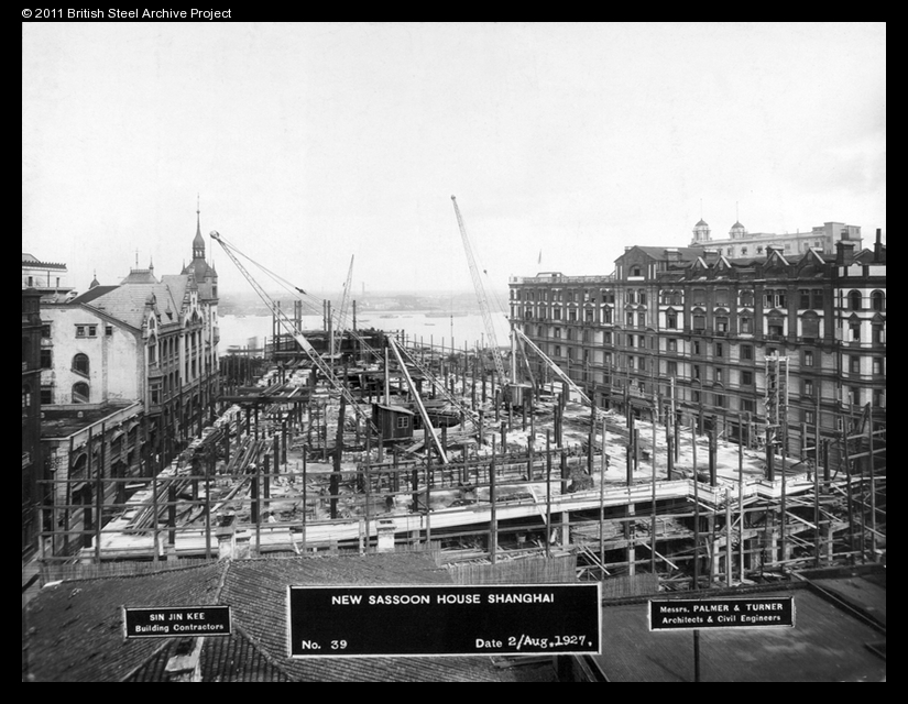 Sassoon House (The Cathay Hotel) under construction, Shanghai, August 1927