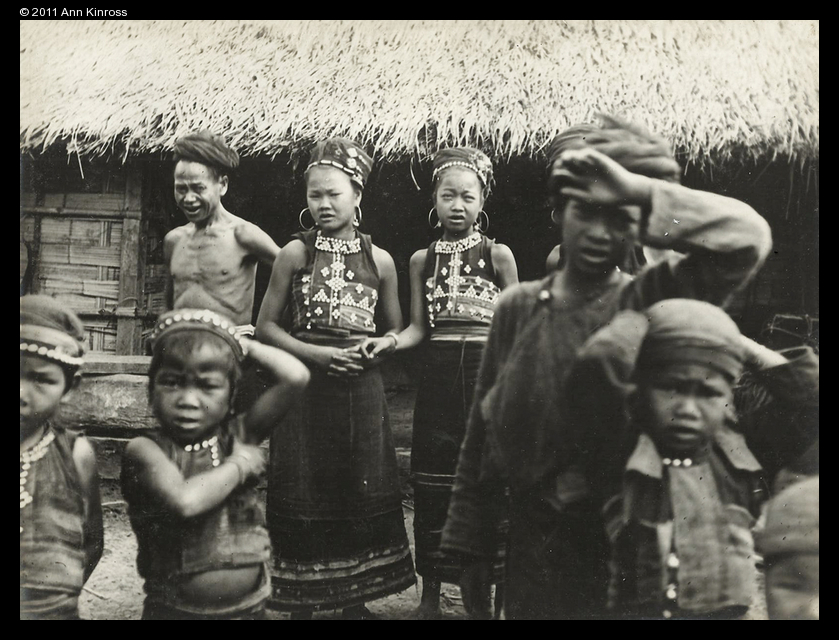 Keywords : Carey;ethnic;ethnology;tribe;clothing;textile;fabric;hat;earring;child;girl;woman;building;house;village;thatch;roof