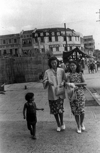 Young ladies and a child beggar