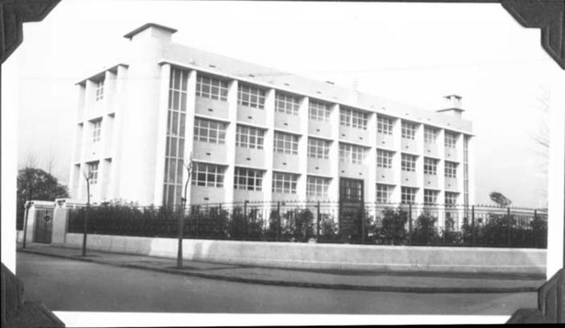 Information data : The fenced garden (foreground) and a five-storeyed building in modern style, it is supposed to be a public school.