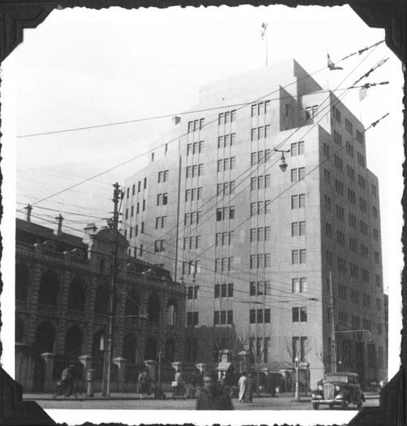 Information data : (right)The Messageries Maritime Building (Haishi tongxu dalou) was in modern American style and (left) the French consulate (built in 1895), was a three-storeyed building in neoclassical style and arched main façade.