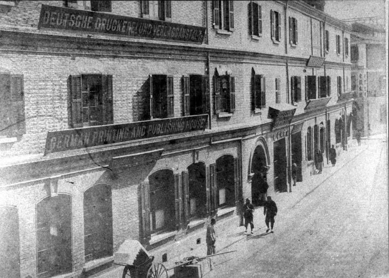 Caption on print : (on the sign) DEUTSCHE DRUCKEREI UND VERLAGANSTALT GERMAN PRINTING AND PUBLISHING HOUSE