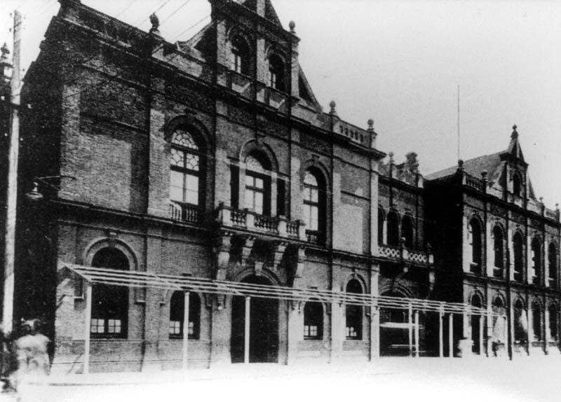 Information data : Town Hall was on the south side of Nanjing Road, between Guangxi and Guizhou Road. According to Kinouchi, it opened in 1899 and was demolished in 1929. Kinouchi Makoto, Shanhai rekishi gaido-mappu, p. 76,