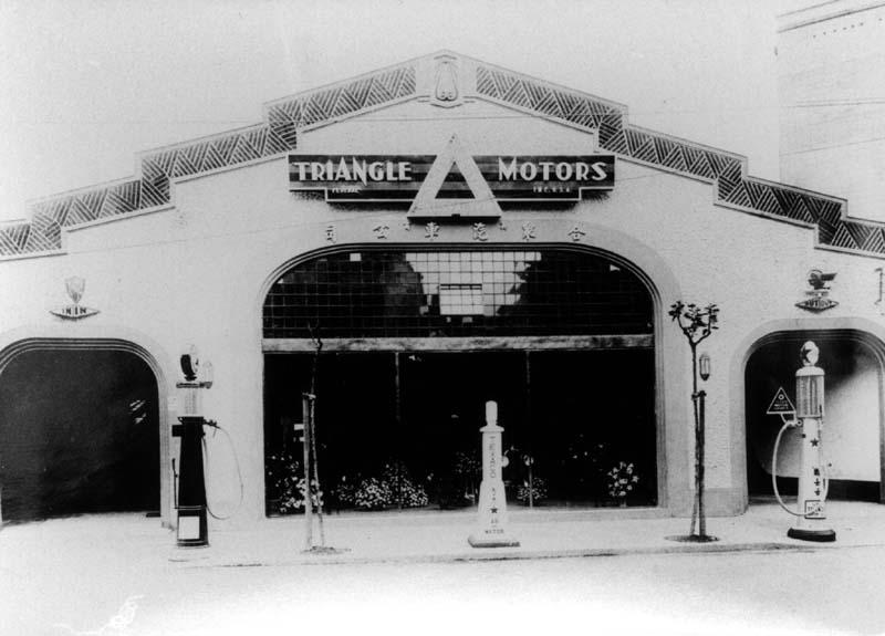 Caption on print : (on the sign) TRIANGLE MOTORS He . qiche gongsi