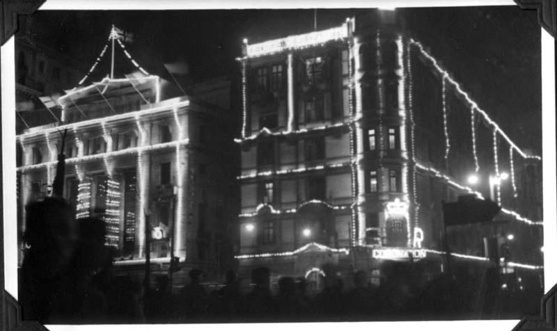 Information data : Buildings to be seen: Palace Hotel (right) and Chartered Bank (left). Corner of Nanking road and the Bund.