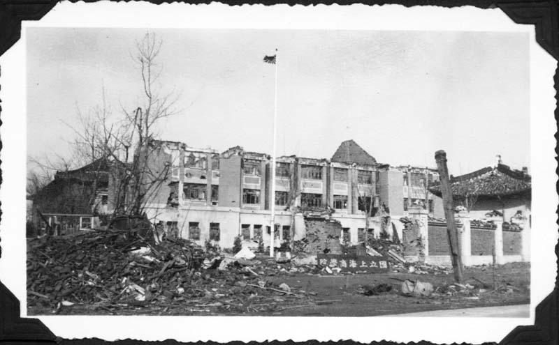 Caption on print : (on a sign) Guoli shanghai shangxueyuan 国立上海商学院 Shanghai National School for Trade and Industry