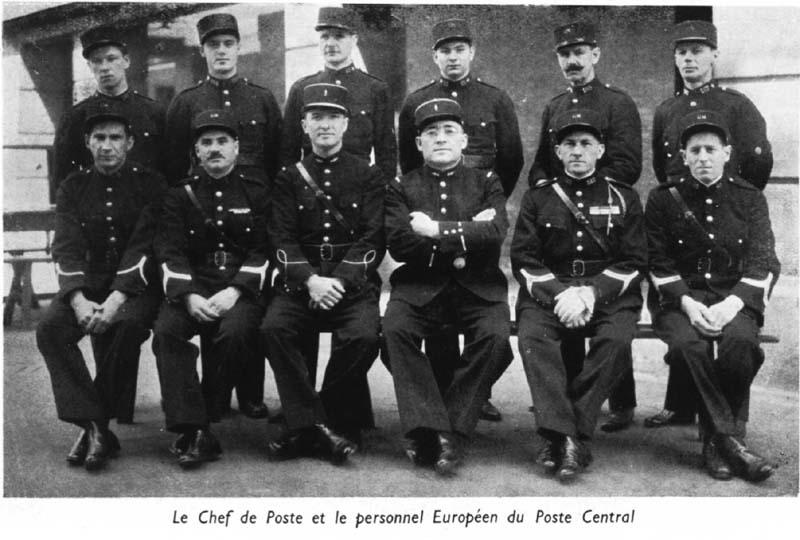 Caption on print : Le Chef de Poste et le personnel Européen du Poste Central