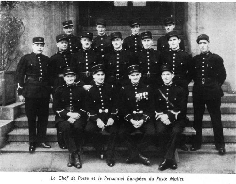 Caption on print : Le Chef de Poste et le personnel Européen du Poste Mallet
