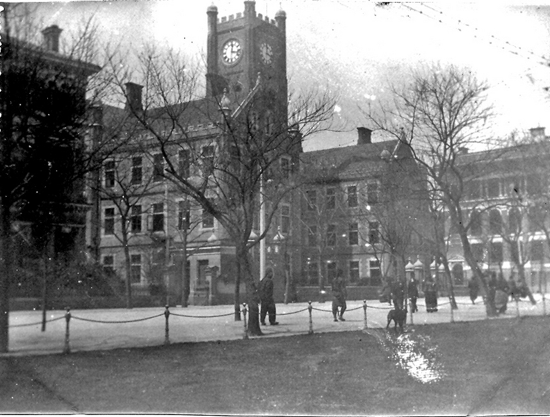 Information data : The first building of the Imperial Maritime Customs was erected in 1857. It was in the form of a Chinese temple and was characteristic of the yamens (imperial offices) built at that time. The building was demolished in 1891 and a new Customs House was built. It was a brick building with a centrally placed five-story clock tower (33 m). Its red brick wall with facings of green stone were reminiscent of a British town hall in the Tudor style. Eventually, a new building was erected in 1925-1927, also with a clock-tower. When the latter was demolished, the old clock "Big Ben" was put into the present tower. (Fletcher, 1987, 1239)