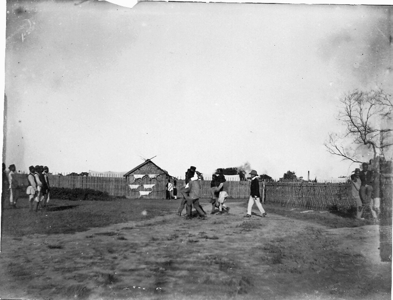 Information data : Probably Sikhs soldiers, but the Shanghai Municipal Police also employed some other Indian groups. These men seem to be practising first aid, e.g. carrying wounded, but these might be recruits undergoing physical exercise. They have no uniforms at this time.
