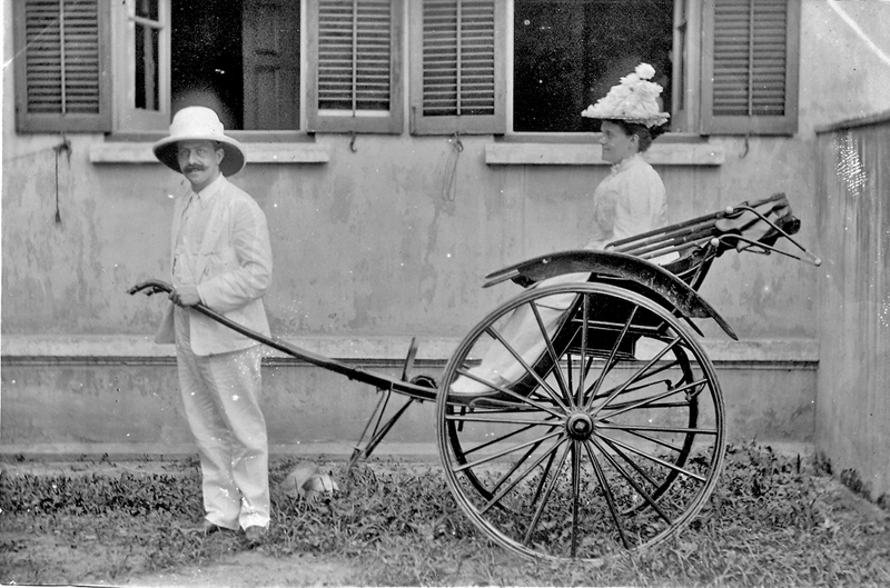 Title : British couple playing rickshaw