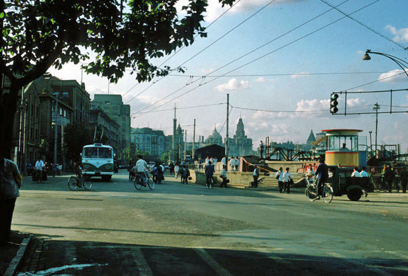 Information data : September 1982. This picture was taken northward from the intersection with Yan'an lu. One can note the presence of the trees that were later on sacrificed.The Bund is also narrower than the present one. Last, access to the Huangpu River was still possible and the river was visible from roadside.