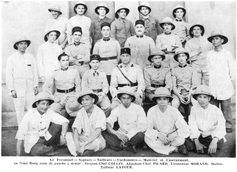 Group photo of the sappers, tailors, cobblers, and equipment staff of the BMICC (Bataillon Mixte d'Infanterie Coloniale de Chine).