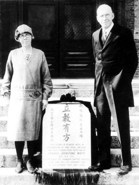 Information data : Stele devote to the memory of Francis Johnstone White offered by the Student association of Shanghai Baptist College (also known as University of Shanghai)