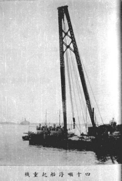 Caption on support : si shi dun fuchuan qizhongji ( forty-ton floating crane)