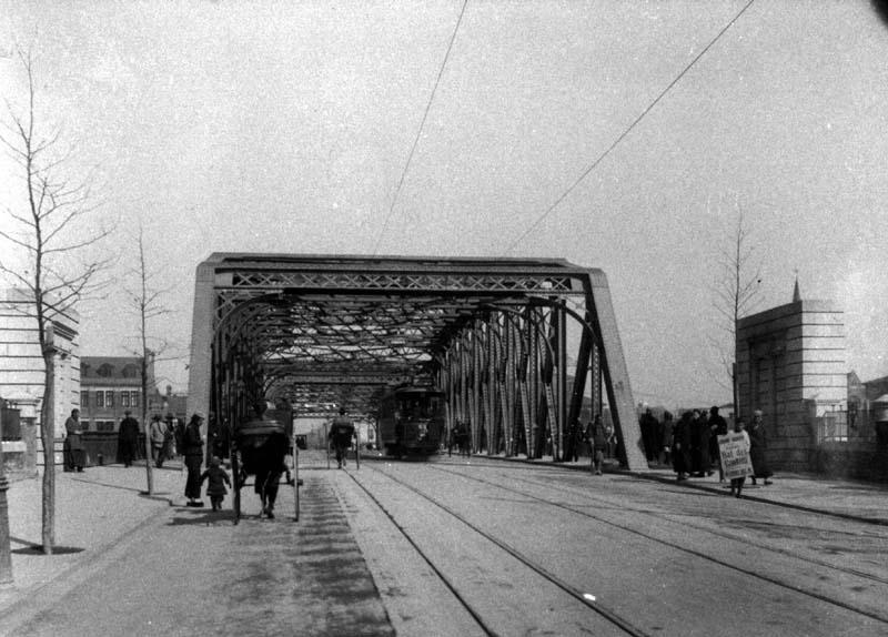In 1906, the SMC replaced the previous wooden bridge with a steel bridge. It was completed the following year and offered more space than before. Its total length was 104.39 meters, with 11.20 meters for vehicles and 2.9 meters on each side for pedestrians. The space between the bridge and the river reached a maximum of 5.57 meters at low ebb and 3.25 meters at high ebb.