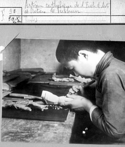 Caption on support : Artisan catholique de l'École des Arts et Metiers de Fushun Fides (Catholic craftsman of the Fushun School for Applied Arts and Crafts) F92 30 et 30 les