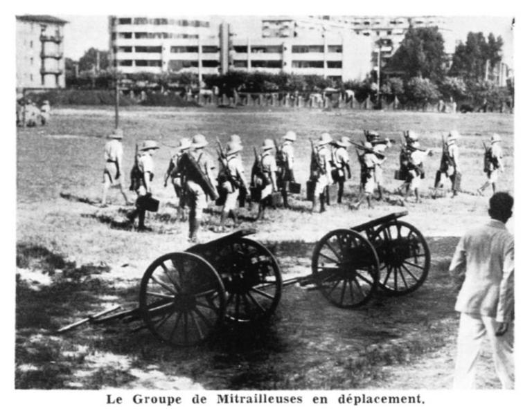 Caption on support : Le Groupe de Mitrailleuses en déplacement. (The machine gun group's movement)